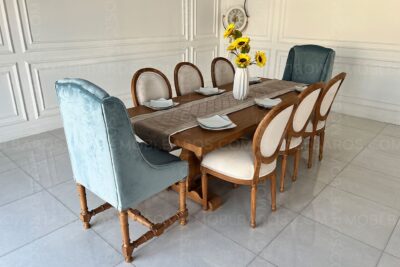 میز ناهار خوری ابزاری با صندلی راشل پایه سم آهویی