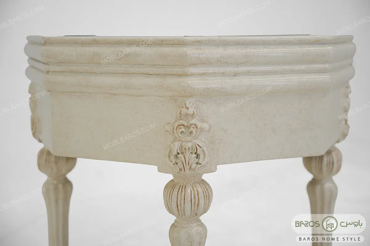 طراحی کلاسیک این میز، از جزئیات و الگوهای قدیمی و زیبا بهره میبرد. این طراحیها معمولاً از خطوط منحنی و شیارهای زیبا استفاده میکنند که به آن جلوه و شکوهی خاص میبخشند.
